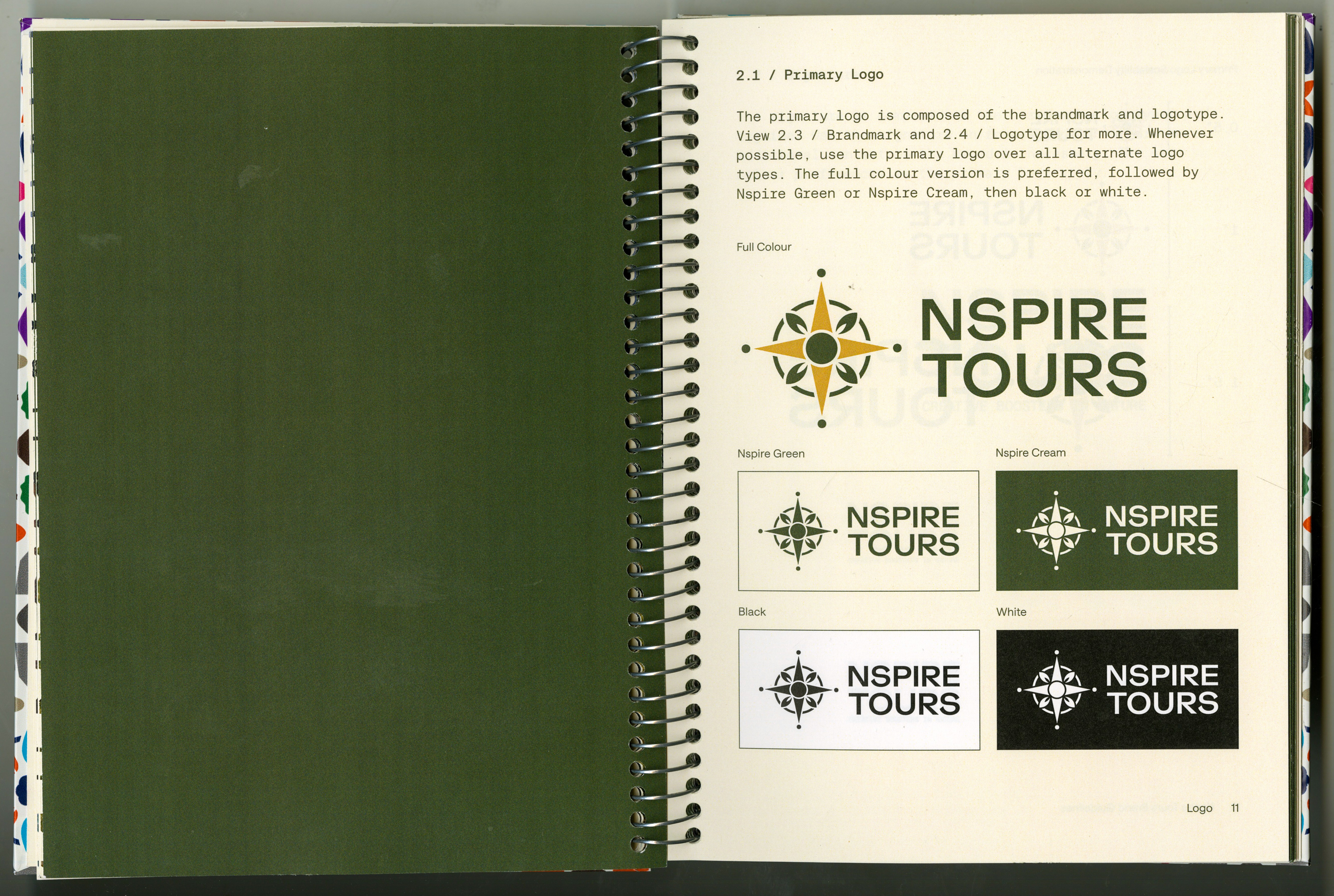 The brand’s primary illustrated logo displays a nature compass rose constructed by sun rays and leaves. In its dynamic system, the logo may be adapted into an unlimited number of creative designs that abstractly reflect its surprise tour destinations’ natural views.
