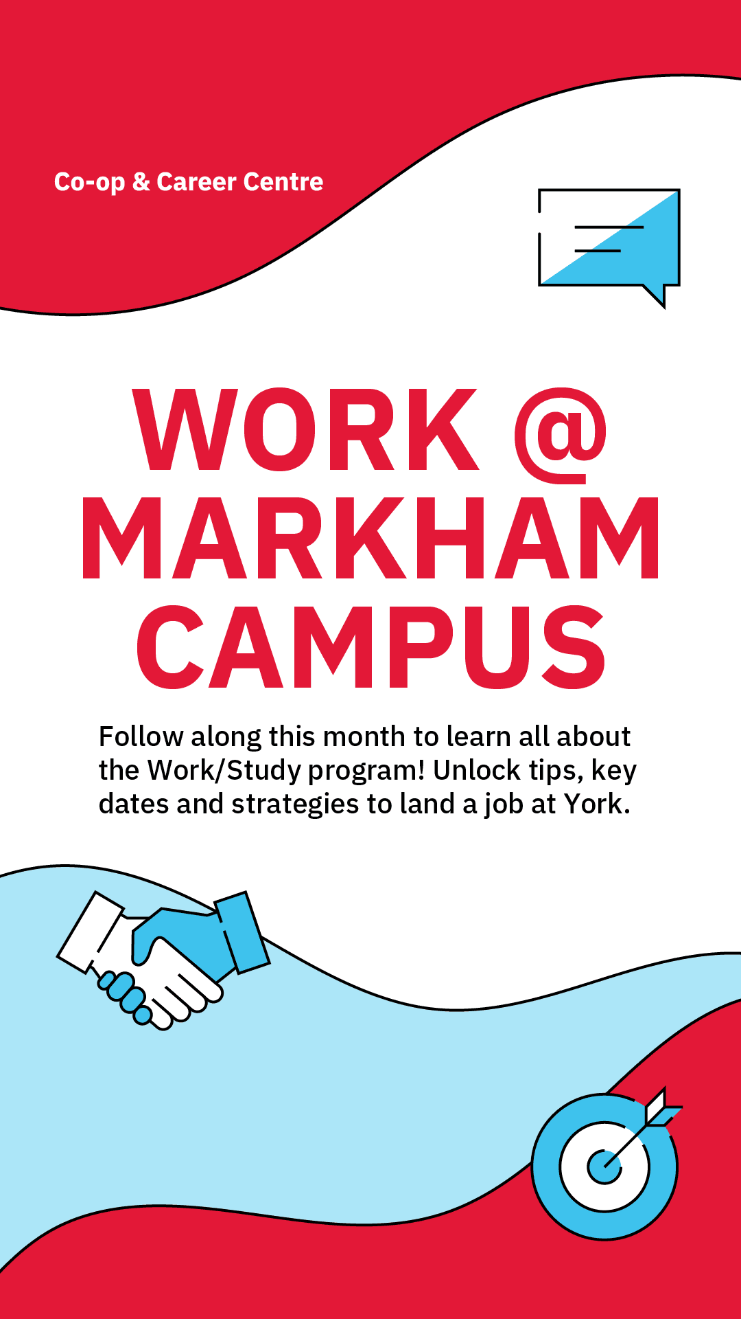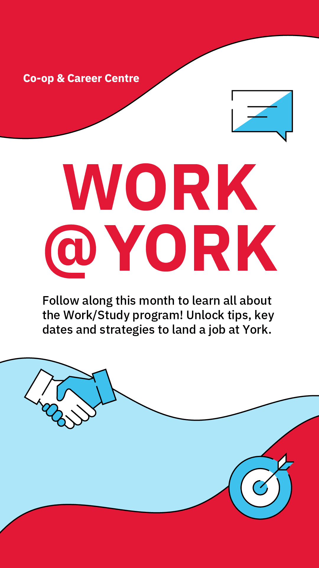 Work @ York is a cross-campus (Keele, Glendon, Markham) campaign that guides students through the Work/Study Program, York’s on-campus employment program for students. It consists of weekly events and activities that help students confidently apply for Summer 2026 Work/Study roles.
